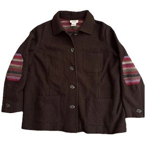 Talbots Boiled Wool Jacket Medium Petite Brown Elbow Patches Shacket Vintage Y2K
