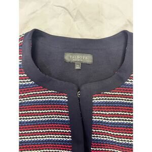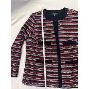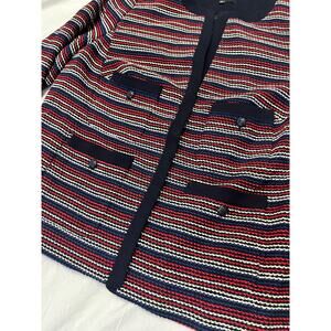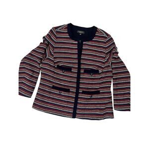 Talbots Bolce Stripe Jacket, Tweed Blazer, Navy/Red Size 1X Elegant Workwear USA