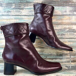 Talbots Boots Womens Size 6M Burgundy Leather Ankle Block Heel Zip Dress Workwear.