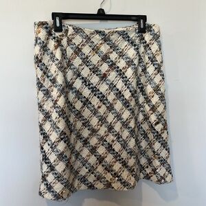 Talbots Boucle Tweed Skirt Plaid Cream Ivory Size 14