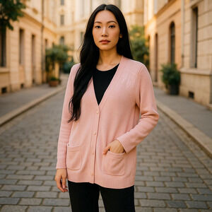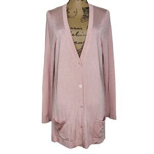 Talbots Boyfriend V-Neck Long Viscose Sweater Cardigan Sweater w/Pockets size LG