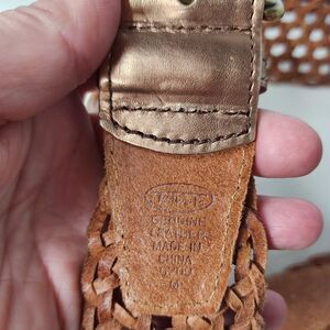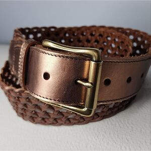 Talbots Braided Leather Belt Medium Brass Buckle Metallic