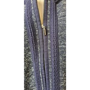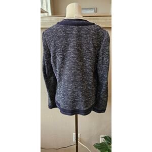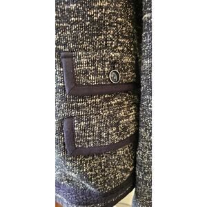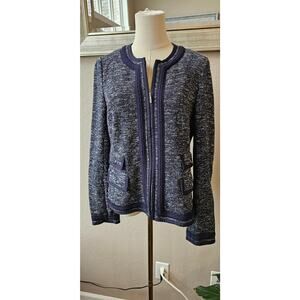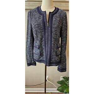 Talbots Braided Trim Full Zip Front Tweed Knit Blazer Jacket Women Size 10 Navy