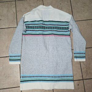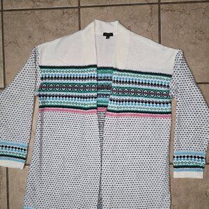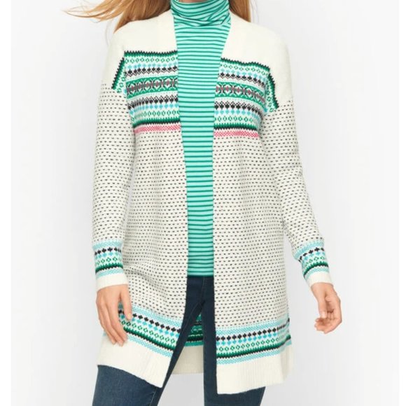 Talbots Breton Fair Isle Cardigan Size Large Cozy Sweater Ivory White