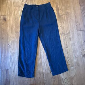 Talbots Bristol 100% linen navy wide leg crop pant 4petite