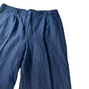 Talbots Bristol Linen Crop Pants Navy Blue Size 16 Petite Summer Classic NWOT