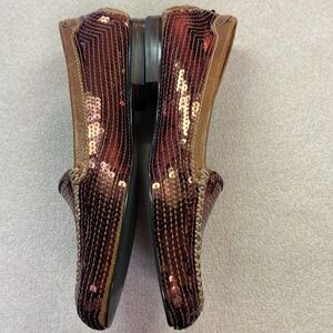 Talbots Bronze Sequined Loafer Flats Leather Upper Size 7