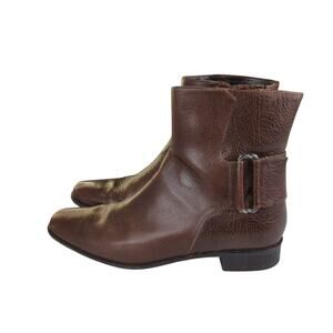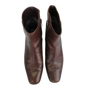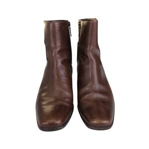 Talbots Brown Leather Ankle Boots Bootie Croc Leather Square Toe Women's 6.5 B