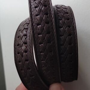 Talbots Brown Leather Woven Braided Belt with Gold Buckle - Small