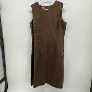 Talbots Brown Linen Sheath Dress Church Office Career Sleeveless Women's Sz 10