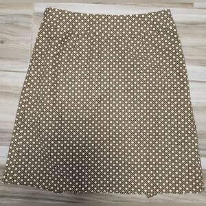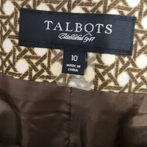 This stylish Talbots size 10 skirt features a chic brown and cream pattern, perfect for any occasion. Its elegant design offers both comfort and sophistication.