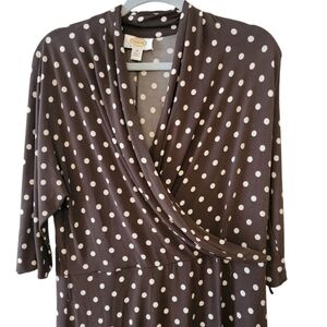 Talbots Brown Polka Dot Faux Wrap Maxi Dress Size 16 Petite
