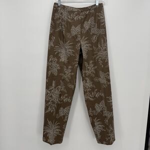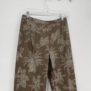 Talbots Brown Tan Fruit Leaf Pattern Casual Business Ankle Pants Cotton Size 6