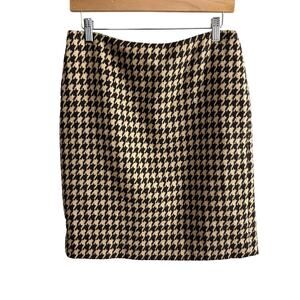 Talbots Brown Tan Houndstooth Plaid Wool Pencil Career Skirt 6 S Small