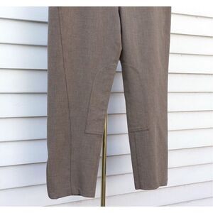 - Classic preppy brown and tan stretch knit modern slim fit ankle crop equestrian riding pants with flat front by Talbots