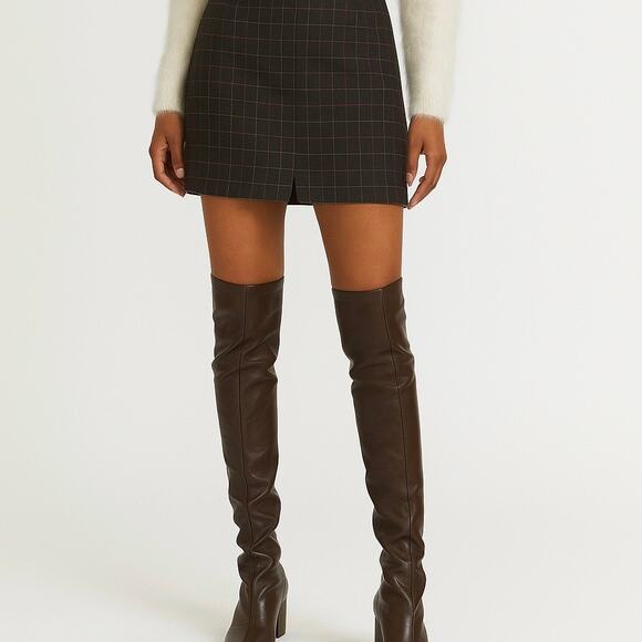 Talbots Brown Windowpane Plaid Wool Mini Skirt Size 10 Petite