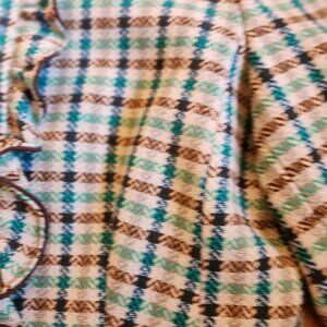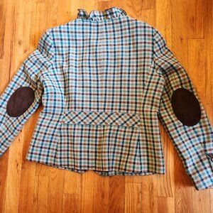 Talbots Brown/Teal Tweed Plaid Ruffled Blazer Elbow Patches Wool Blend Size 12P