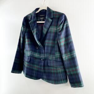 Talbots Brushed Wool Double Breasted Blazer Jacket Tartan Plaid Green 10P