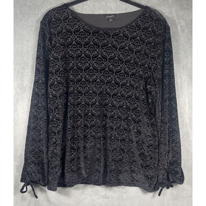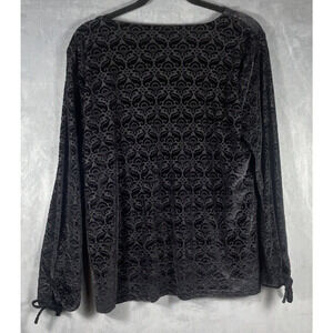 Talbots Burnout Black Velvet Stretch Tie Bow At Wrist Top Sz Large Party