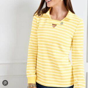 Talbots Butter Yellow Striped Nautical Coastal Button Collared Sweatshirt Sz XL