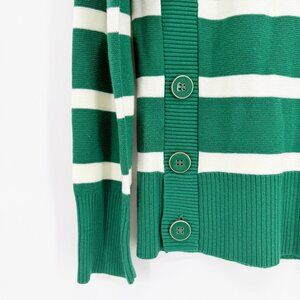 Talbots Button Detail Crew Neck Knit Sweater Green/White Stripe S