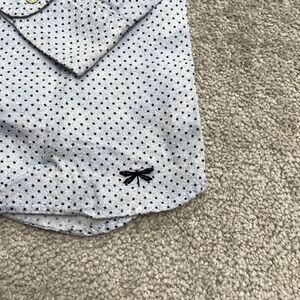 Talbots Button Down Shirt Womens Large Blue Polka Long Sleeve Cotton Casual Top