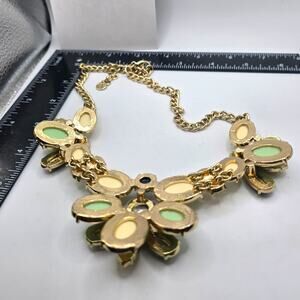 Talbots Button Flower Necklace Beige Blue Green Gold Tone Chain 16" 18" Long