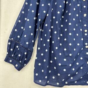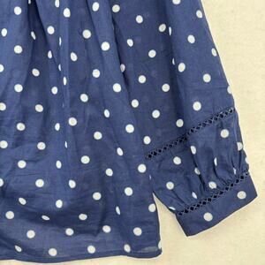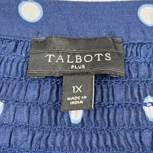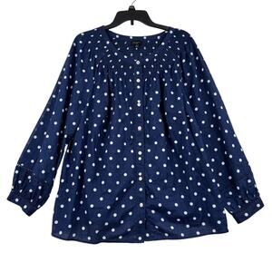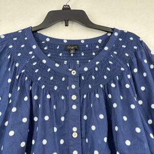 Talbots Button Front Blouse Size 1X Blue Polka Dot Smocked Neck Balloon Sleeve