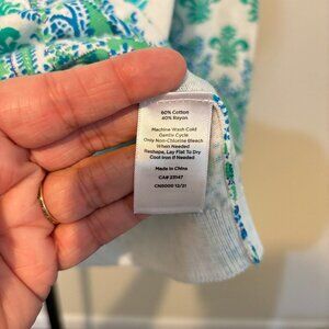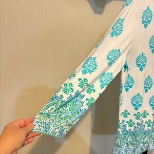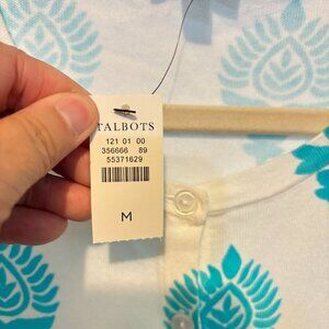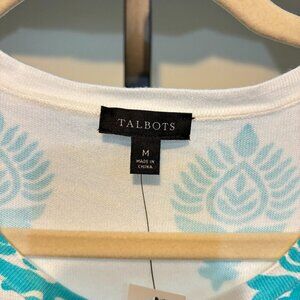 Talbot's Button Front Cardigan White Turquoise Blue Print in a size Medium