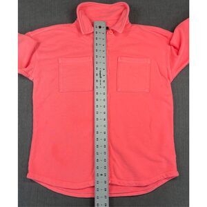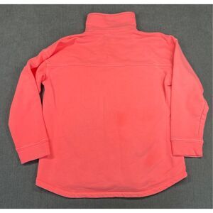 Soft and cozy coral pink fleece shirt from Talbots in a women’s size M. Features a button front, chest pockets, and a high collar for added warmth. Perfect as a lightweight layering piece for casual wear or cool weather. Gently worn with no visible flaws. Please see photos for measurements.