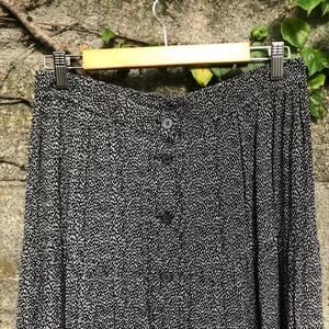 Talbots Button Front Tiered Midi Skirt Dot Pattern Black White Medium NWT