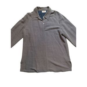 Talbots Button Front Shirt Sz L Wool Blend Checkered Collared Black White