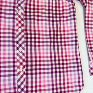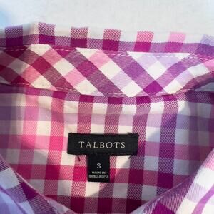 Talbots Button Shirt Woman's Small Long Sleeve Pink Purple Plaid All Cotton