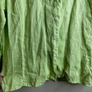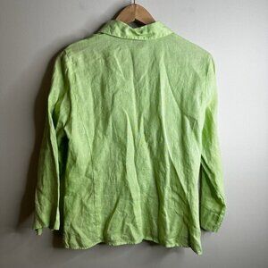 Talbots Button Up Blouse Too Womens Sz 10 Green Irish Linen Coastal Beach Soft