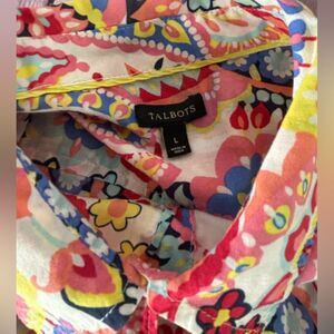 Talbots Button Up Bright Pink Paisley Roll Tab Sleeve Large