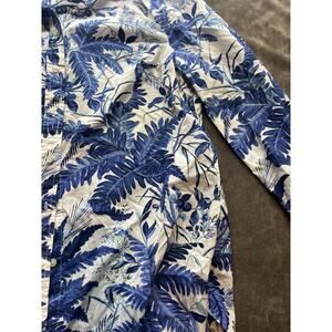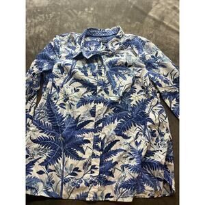 Talbots Button Up Shirt Long Sleeve Paisley Floral Blue & White Size Large