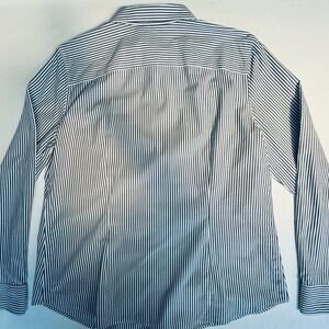 Talbots Button Up Shirt Women Sz 16 Long Sleeve Cotton Spandex Gray White Stripe