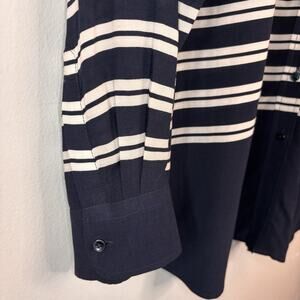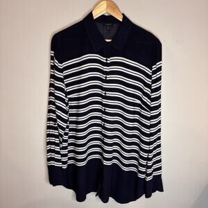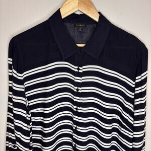 Talbots Button Up Shirt Women's XL Navy White Stripe Nautical Coastal Resort