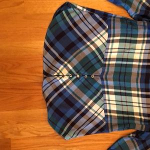 Very cute shirt with adorable back detail. 100% rayon. Very soft and comfortable!