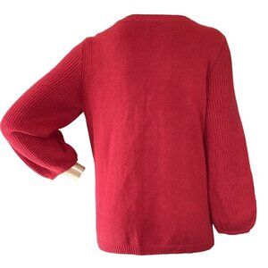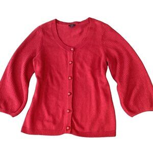 Talbots Button-Up Cardigan Sweater Ribbed Knit Balloon Sleeves M Red #314E