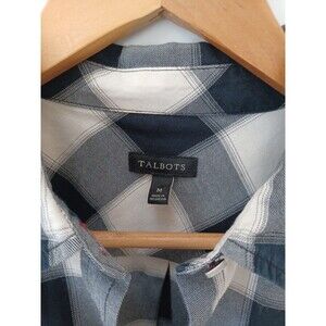 Talbots ButtonUp Shirt Womens Medium Black White Checkered Boyfriend Long Sleeve. Condition is Pre-owned. Shipped with USPS