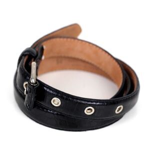 Talbots CROCO EMBOSSED BLACK GENUINE LEATHER 3/4"Wd DRESS WOMEN'S BELT Sz M (*46
