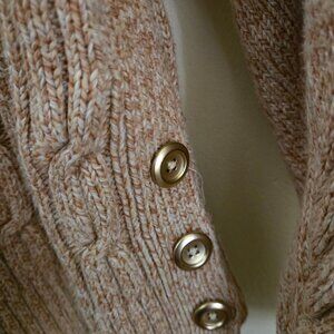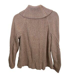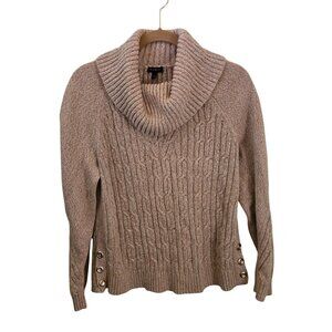 Talbots Cable Cowl Neck Sweater Tan Marled Gold Button Detail Sustainable Size M