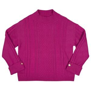 Talbots Cable Knit Button Cuff Sweater Vivid Berry Large Classy Sophisticated