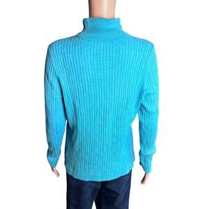 Talbots Cable Knit Cotton Blend Turtleneck Sweater Aqua XL Preppy Casual XL
