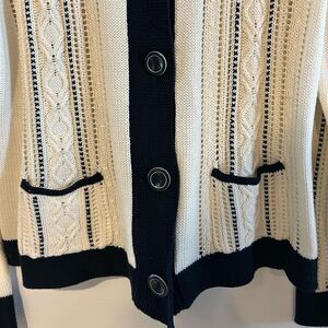 Talbots Cable Knit Cream & Black Cotton Button Down Cardigan Sweater Large