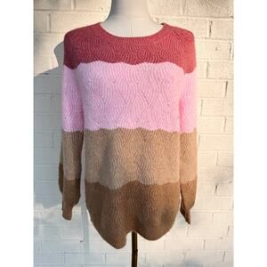 Talbots Cable Knit Crewneck Sweater Wavy Stripe Sp Multicolor Spring Fall