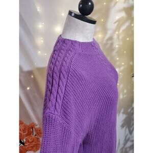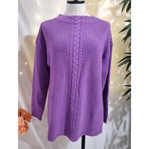 Talbots Cable Knit Lambs Wool Blend Ribbed Pullover Sweater Womens Size L Purple