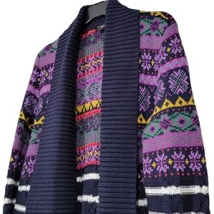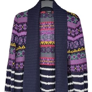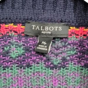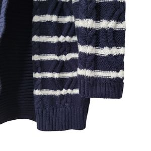 Talbots Cable Knit Open Navy Blue Striped Cardigan Sweater Womens Size M Petite