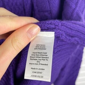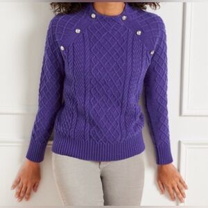 Talbots sweater Size medium petite women’s In excellent used condition Purple color with silver buttons Cable knit Mock neck Long sleeved Has 6 silver buttons on the shoulders on the front Elegant and stylish! ✨ 50% nylon 30% acrylic 20% polyester Hand wash cold Sleeves 23” PTP 20” Shoulder down 23.5” Tags: cable knit, cozy, stylish, elegant, pullover, charming, soft, charming, soft, luxurious, textured, classic, casual, vibrant, petite * 📦 Bundle Up for Special Discounts * 🚀 Enjoy Fast Shipping * 🚭 Smoke-Free Home * 🆕 Discover New Inventory Daily * 🤝 Reasonable Offers Accepted * ✅Posh Ambassador * ⭐️5 Star Seller ✨Thanks for stopping by my closet! Happy shopping! 💕✨